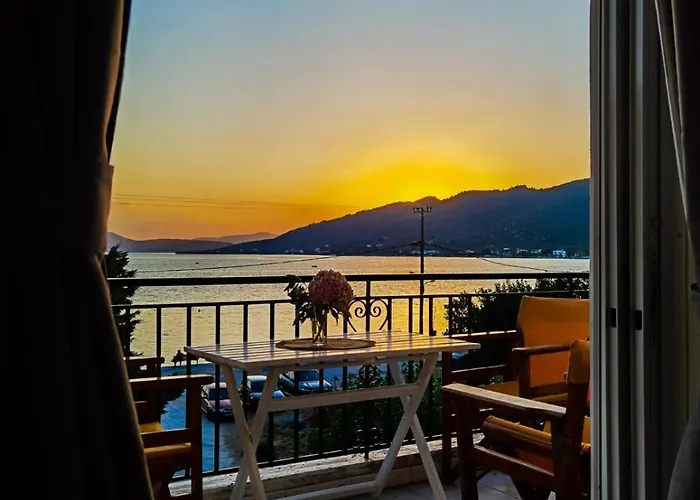 To enjoy your vacation in Edipsos, stay at the beachfront 25 m^2 Giorgos concept suitesTHEA Edipsos apartment, which is approximately a 5-minute ride from Agios Panteleimonas and only 1.4 km from Ag. Nikolaos Beach. The 1-bedroom apartment features a terrace that overlooks the sea.